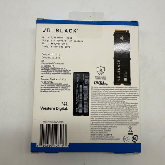 New Western Digital WD 2280mm SN850P 1TB M.2 NVMe Gen 4.0 x 4 SSD WDBBYV0010BNC