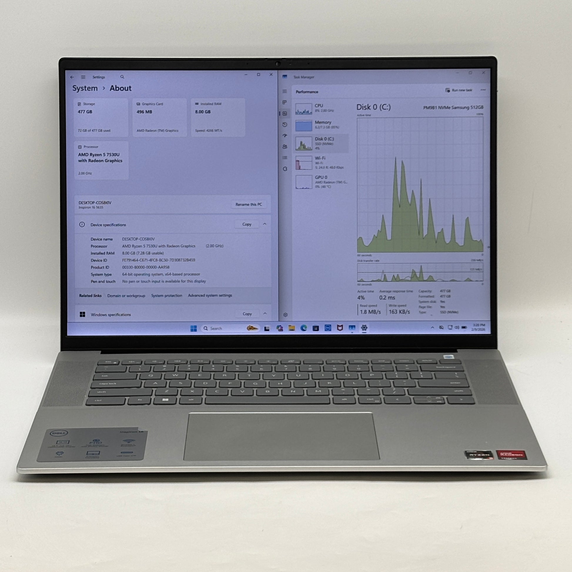 Dell Inspiron 16 5635 16" Ryzen 5 7530U 2.0GHz 8GB RAM 512GB SSD