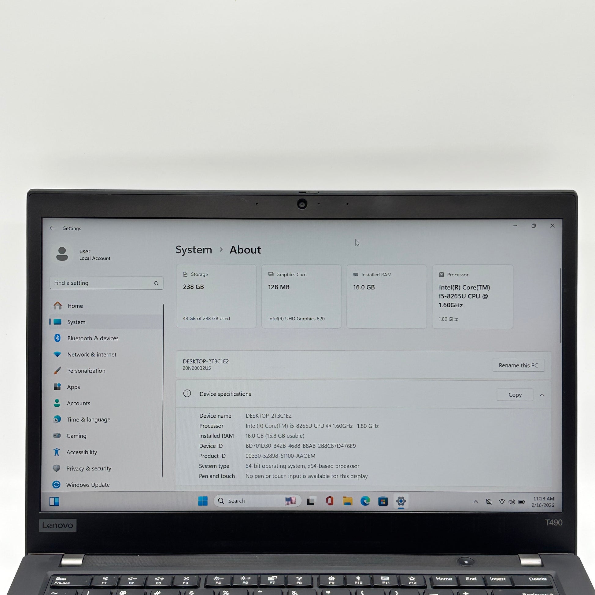 | Model | ThinkPad T490 |