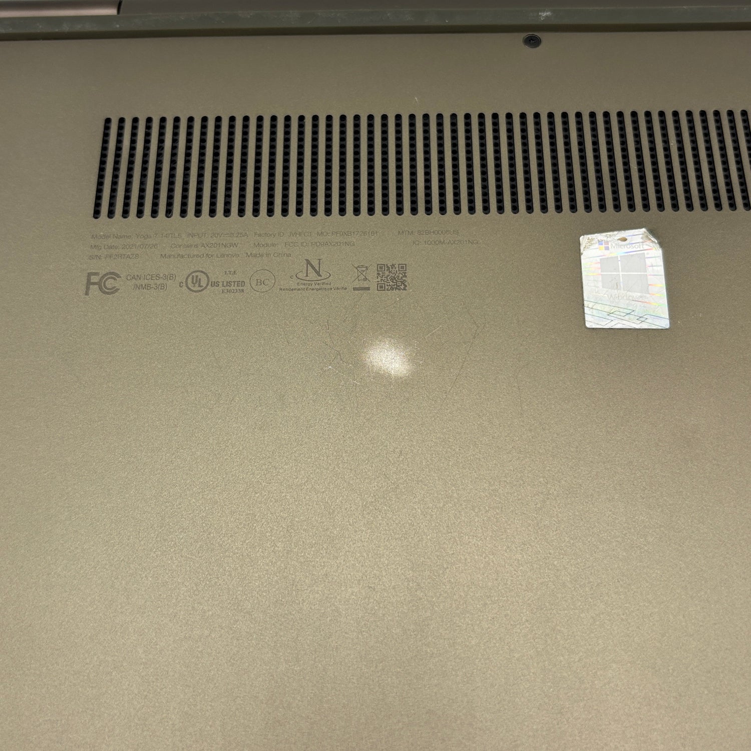 The top case is in fair condition due to scuffs, dents, scratches and wear. Some of these scratches are semi-deep and easily seen. The bottom is in fair condition due to scuffs, dents, scratches and wear. Some of these scratches are semi-deep and easily seen. The sides are in fair condition due to some deep scratches, dents and wear. The ports are functional, but are in fair condition due to heavy use, dings and scratches. The screen is in good condition with some minor wear and scuffs. The keyboard is in good condition with some minor wear and signs of use. The hinges are in good condition, sturdy and functioning properly. The bezel is in good cosmetic condition with little to no wear. Please view our close up photos, as these are taken of the actual item being offered for sale.