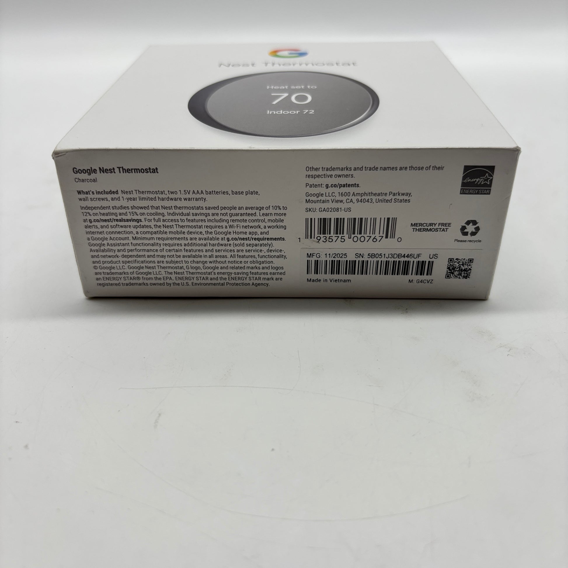 New Google Nest Smart Thermostat GA02081-US