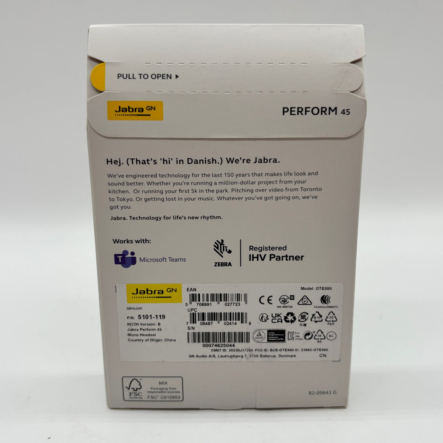 New Jabra Perform 45 Professional Wired Mono Headset Black 5101-119