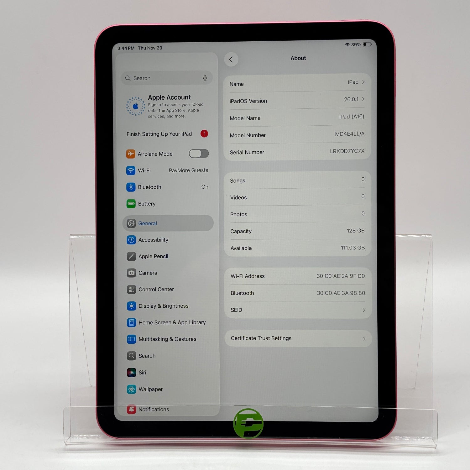 | Model | iPad 11" (A16) |