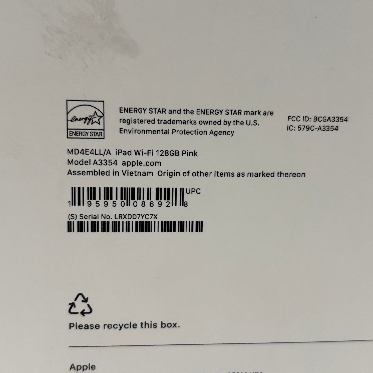 | Serial# | LRXDD7YC7X |